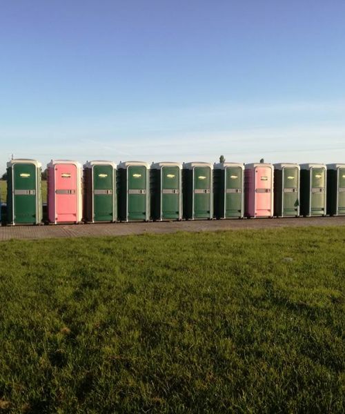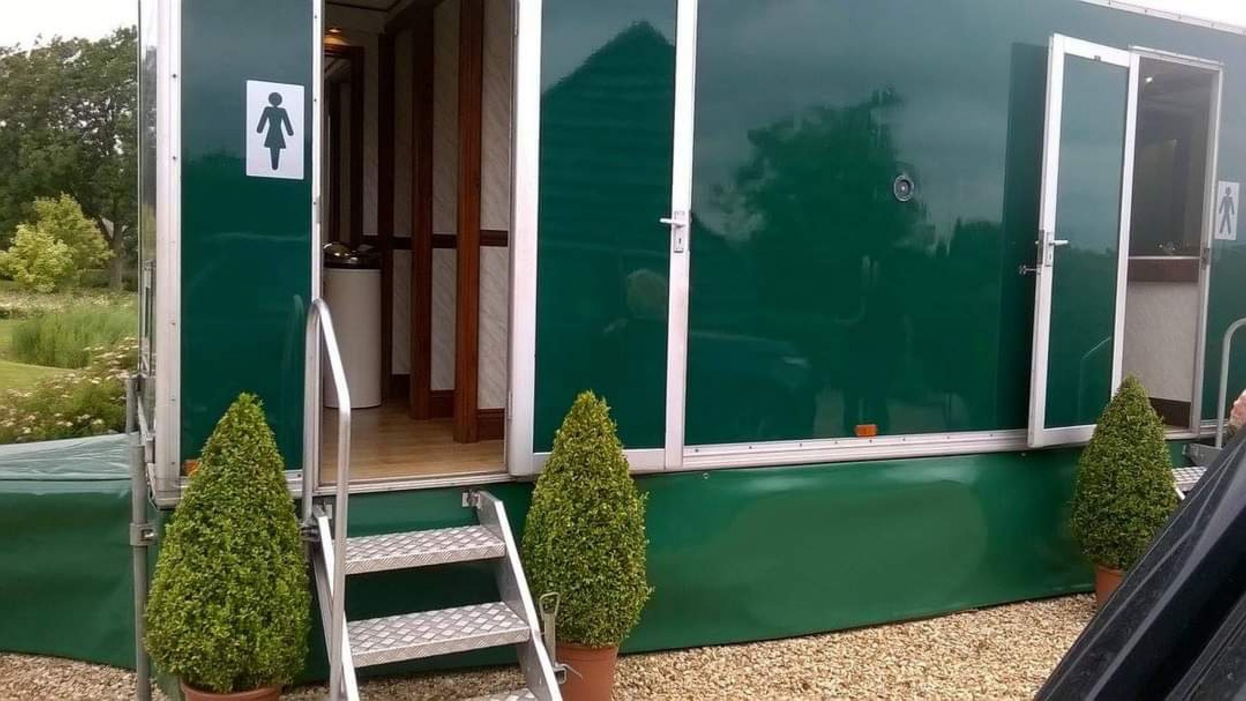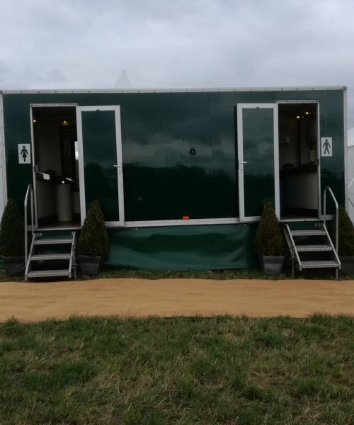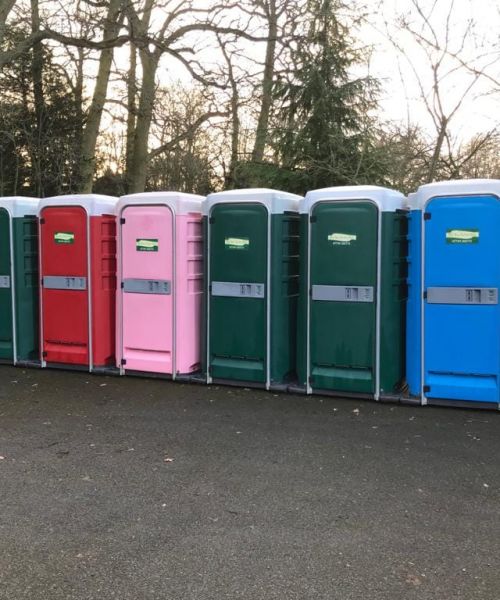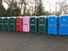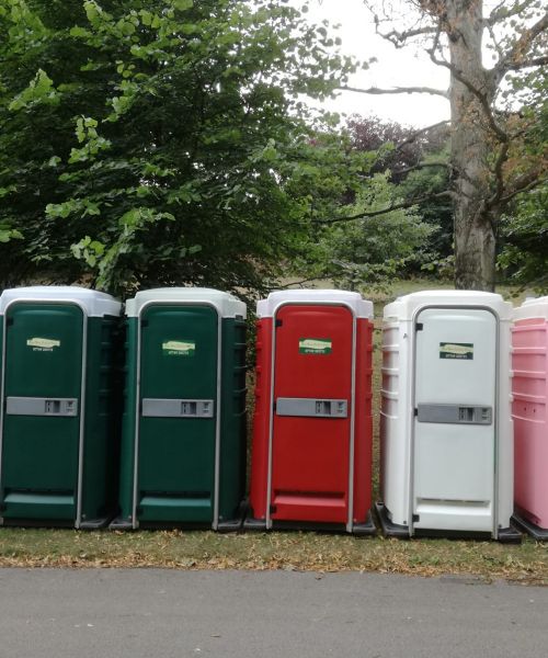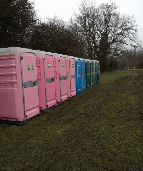 The dark green units blend in with the surroundings for countryside events whilst pink is the ideal party choice with extra decoration if requested.